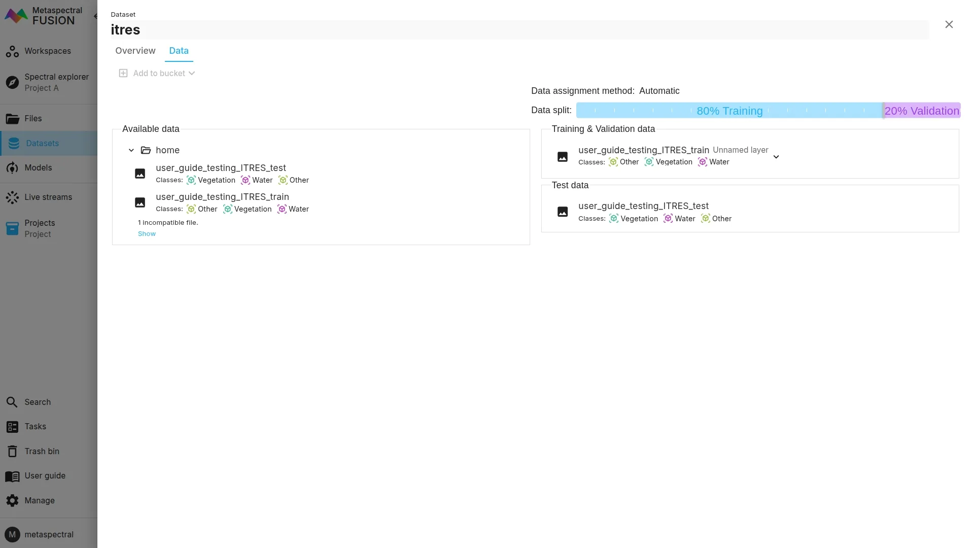 First add the images you want to use in your training bucket in the Data tab.