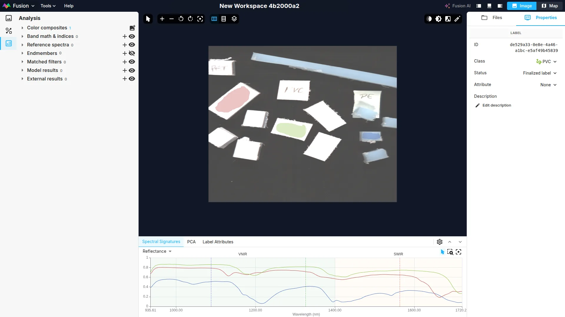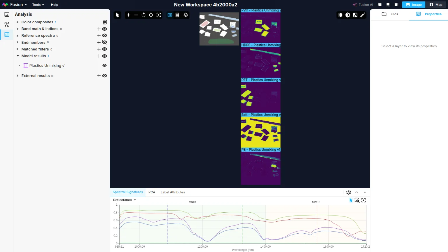 To generate inference, click on the + icon in the Model results section and click on the Plastics Unmixing model.